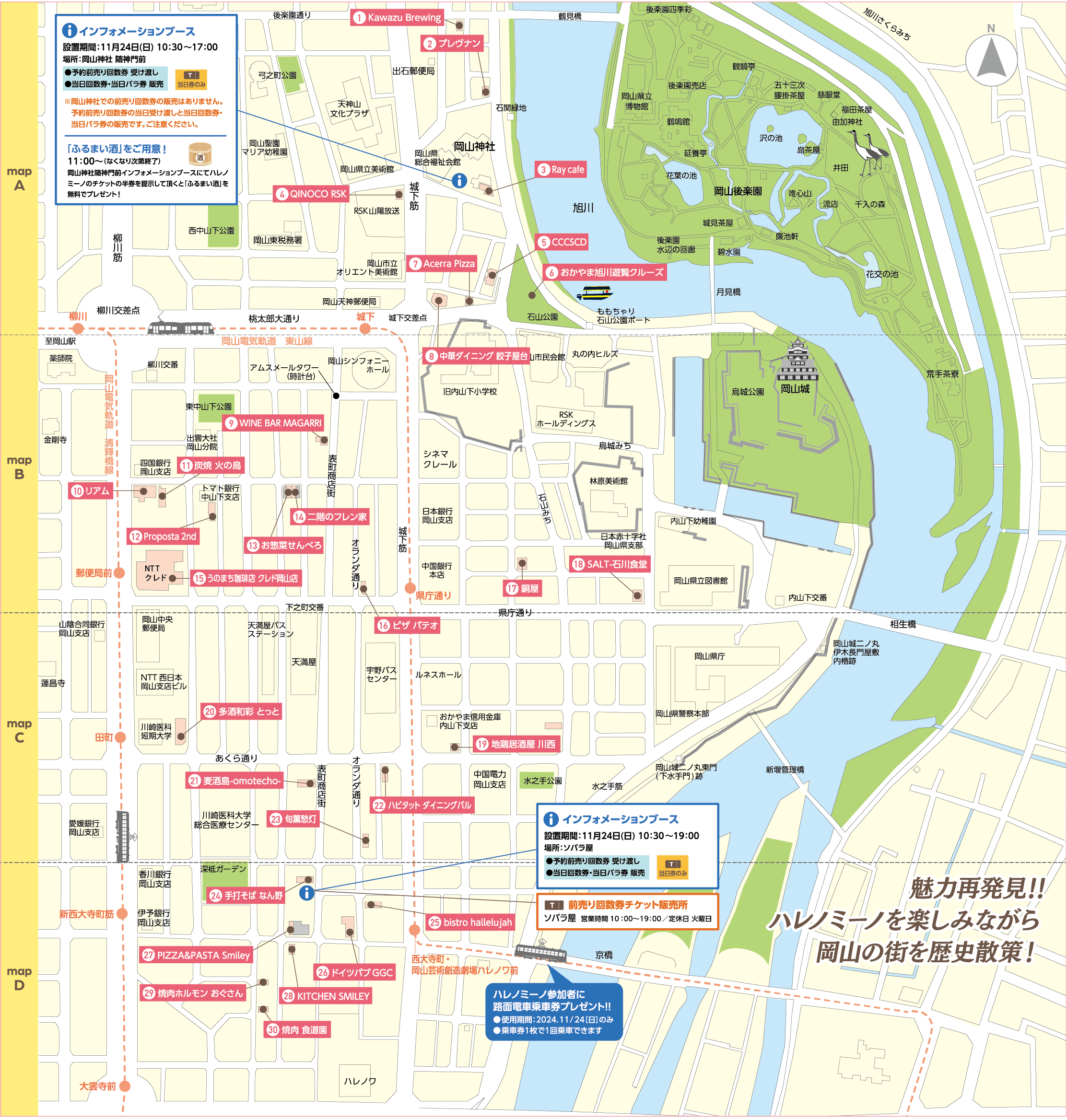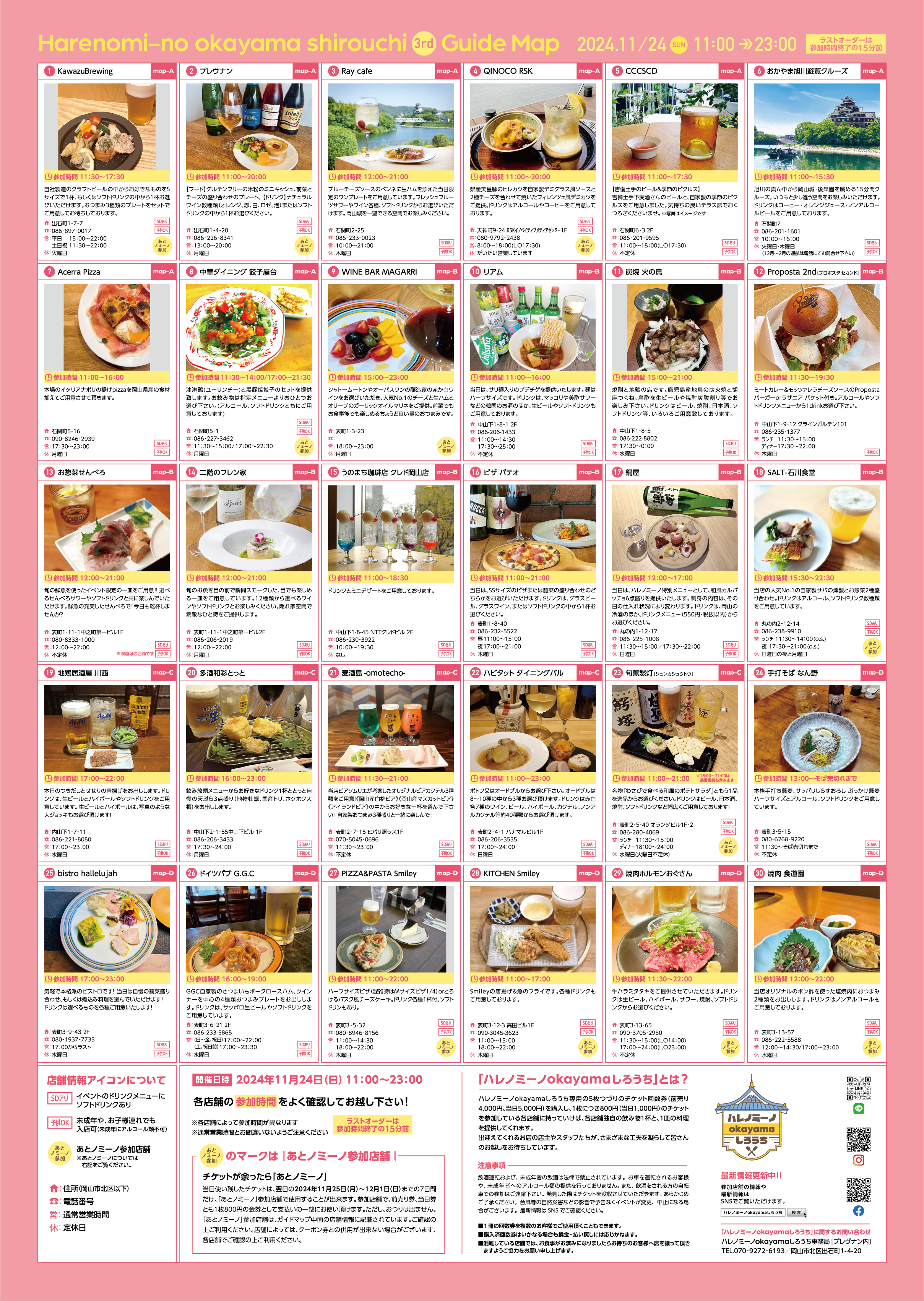 前売り回数券、当日回数券をご購入頂くと「第3回ハレノミーノokayamaしろうち」ガイドマップがついてきます。